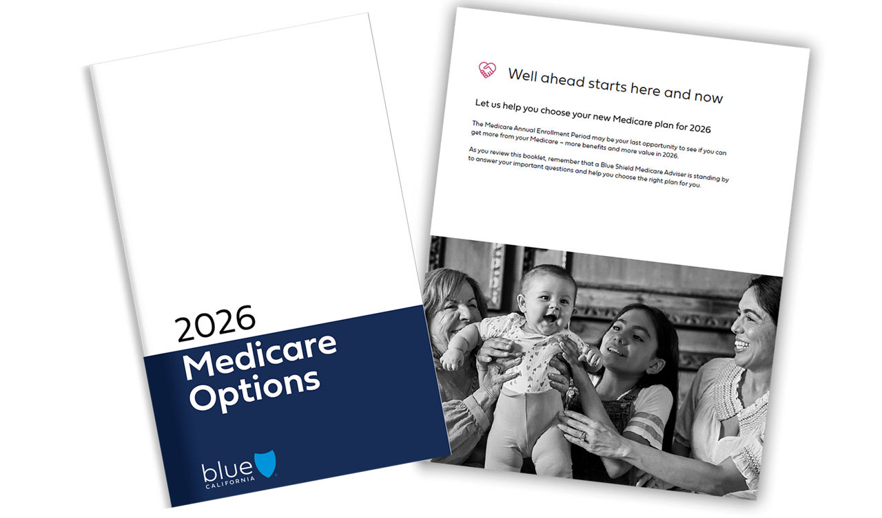 This free† booklet will provide you with important information about your choices, including all-in-one Blue Shield Medicare Advantage plans that include coverage for doctors, hospitals and prescription drugs with extra benefits like vision and hearing exams, plus access to one of California’s largest provider networks.